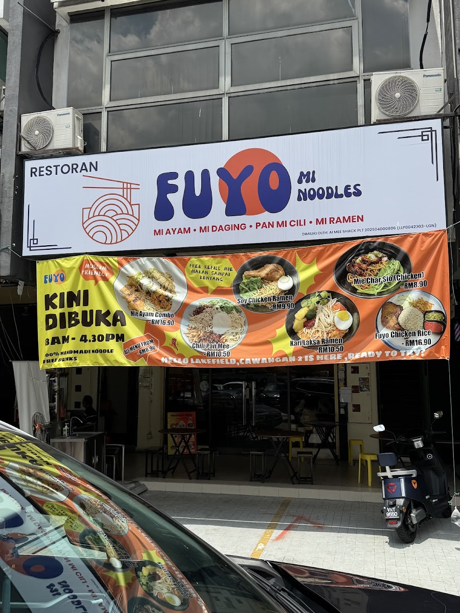 The menu at Fuyo Noodles Cafe in Lakefield offers a variety of noodle-based dishes primarily featuring handmade noodles served with different protein and sauce combinations. The main food items include spicy options like the Chicken Belado Noodles, which consist of chicken fried in a homemade chili sauce paired with minced chicken and topped with an onsen egg. Another noodle choice is the Curry Mee AtasSikit, which features a blend of curry paste slow-cooked in creamy coconut milk.